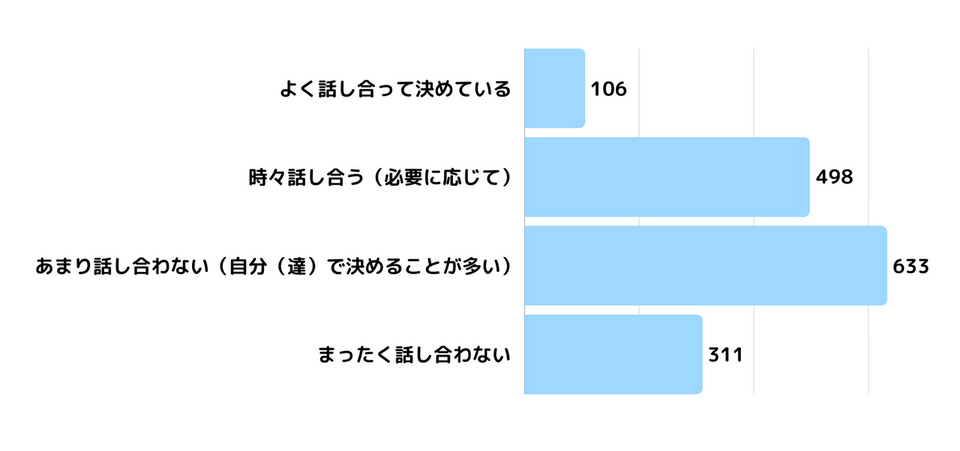 調査によると、支出に関して「あまり話し合わない」「まったく話し合わない」と回答した人は合計で944人となり、全体の6割を超えました。